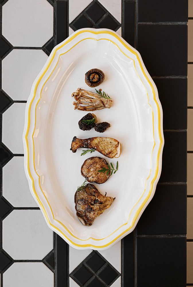 Бестселлеры среди салатов — винегрет, салат с руколой, салат «Офисьель». В постном меню — версия знаменитого пушкинского винегрета, но без кильки: отварные картофель, морковь, свекла, соленый огурец, горошек, маринованные артишоки и опята, квашеная капуста и ароматное масло. Салат из руколы состоит из букета фермерской зелени, помидоров черри, перца рамиро, мини-кукурузы, маслин и лука. В качестве первого стоит заказать сборную грибную солянку. Наваристый бульон из нескольких видов грибов (белых, опят, шампиньонов, соленых груздей) с добавлением соленых огурцов, томатов, зелени и маслин подают с постной сметаной.
