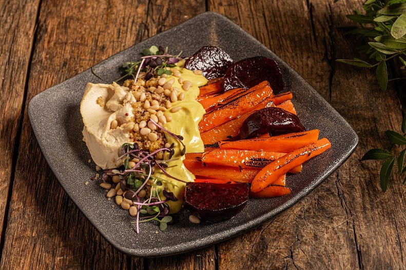 Постное меню ресторана «Шинок» Елена Никифорова задумывала так, чтобы пост ощущался не как ограничение, а как сезон вкуса. В основе — овощи, крупы, бобовые и грибы: то, что южнорусская кухня умеет раскрывать особенно ярко, когда на первый план выходят текстуры, правильная прожарка, кислота ягод и ароматные соусы. В холодных закусках она делает ставку на свежесть и контраст: салат с виноградом и смородиной, с ежевикой — для живой кисло‑сладкой ноты; винегрет с груздями — как уважение к классике. «Херсонский салат» и ассорти свежих овощей подчёркивают простую идею меню: продукт должен быть узнаваемым.