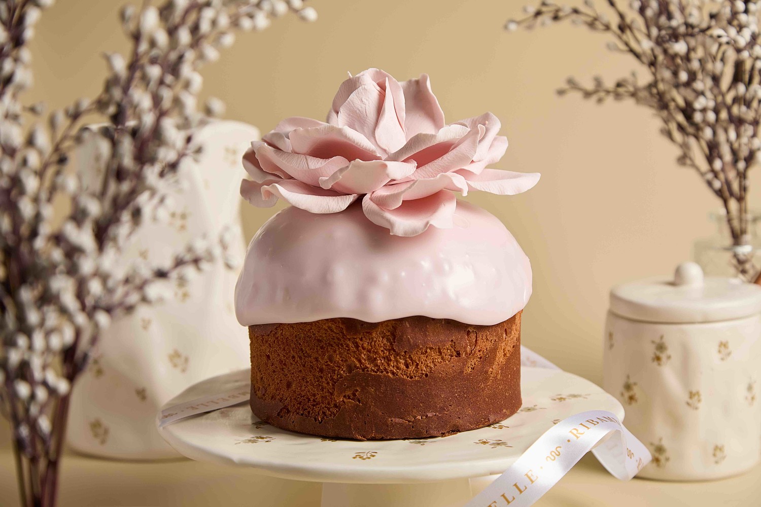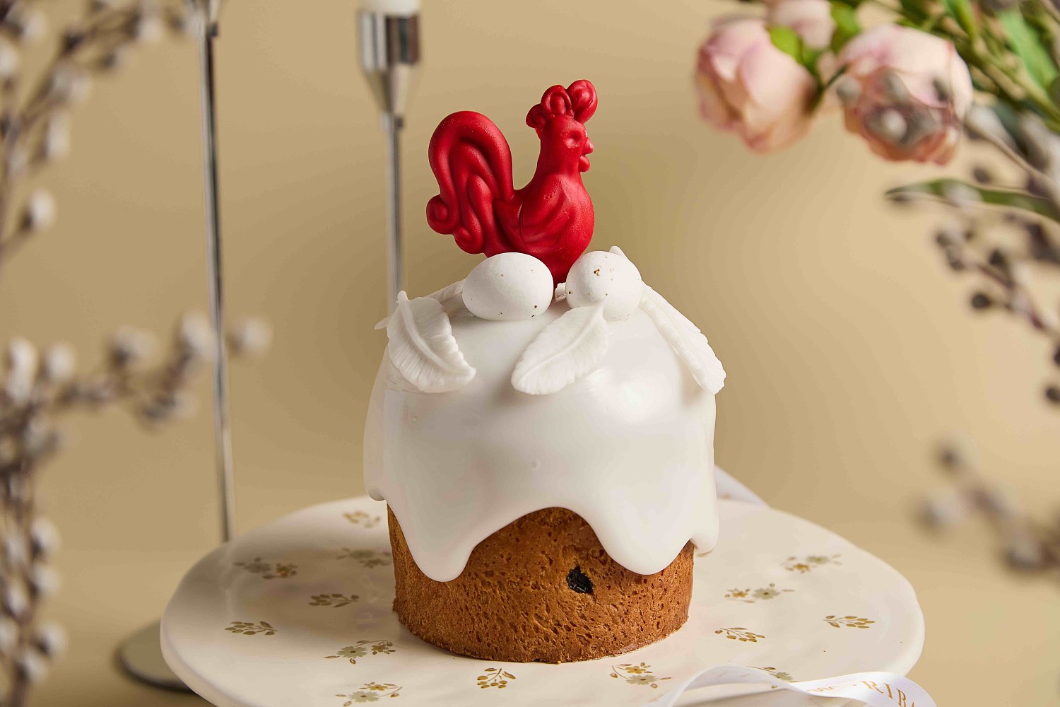 - кулич «Цвет праздника», нарядно украшенный нежным цветком розы из мастики