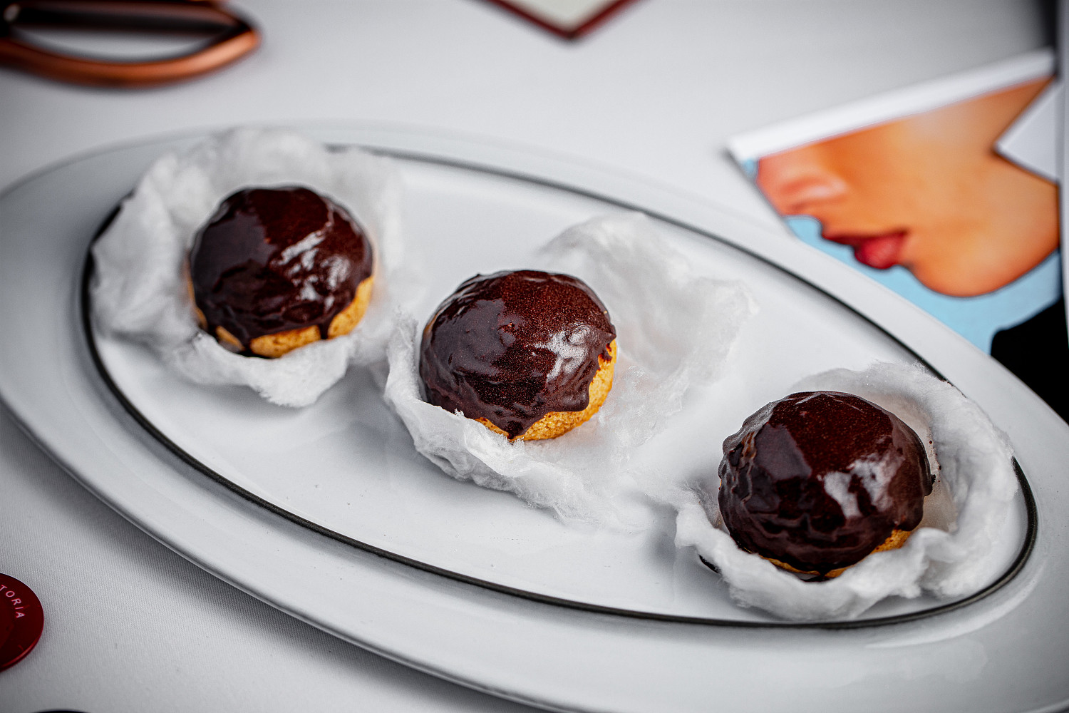 Завершает меню трио профитролей — легкий, но выразительный десерт, в котором классика звучит в актуальной интерпретации.