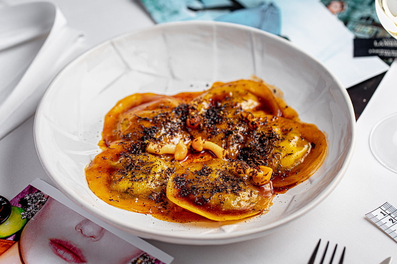 В меню появляются и более насыщенные, согревающие позиции: равиоли с томленым ягненком, качо э пеппе с гребешком и томленые ребра кальби — блюда с характером, в которых сочетаются глубина вкуса и современная подача.