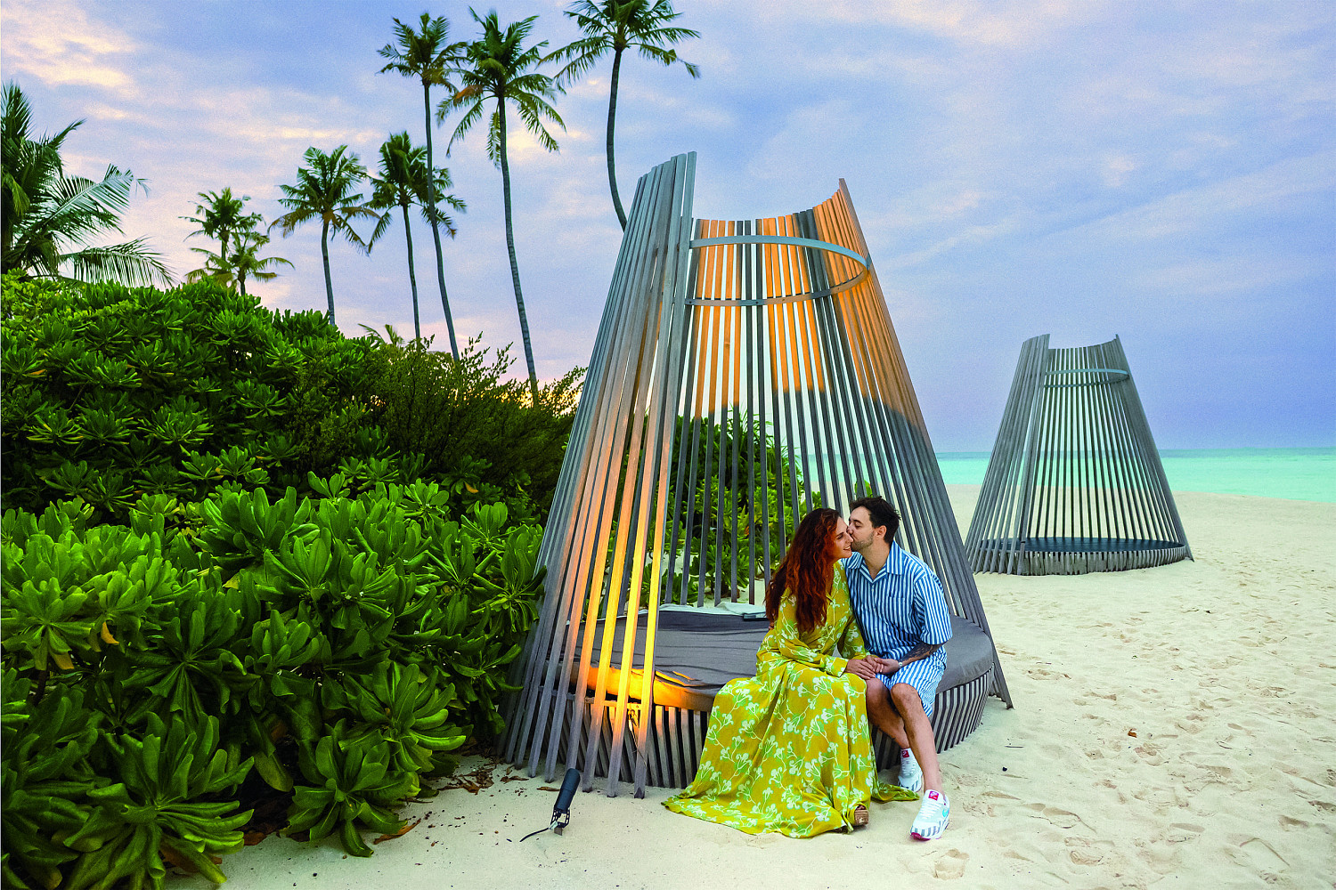 Буквально накануне мы пришли к остеопату (у нас есть волшебный семейный доктор) после съемок в Астрахани, где мы пролежали в больнице с ковидом две недели... Он нас посмотрел, сказал, что мы здоровы, но нам нужно на океан. Я говорю: «Ну какой океан? Может быть, море?» Я на океан вообще не езжу... Проходит пять дней, звонит мой директор Саша, говорит, есть возможность познакомиться с мальдивским отелем Raaya, но надо лететь на следующий день. Конечно, мы были готовы! Для меня это первая поездка на Мальдивы, я обычно летала в Турцию либо, если высокий бюджет в Сан-Тропе, — на Сардинию... Но мы так влюбились в это место!
