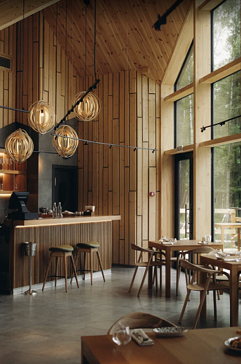Гастрономическая концепция курорта сочетает локальные северные продукты с современными кулинарными подходами. На территории курорта работают несколько гастрономических пространств: