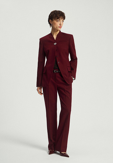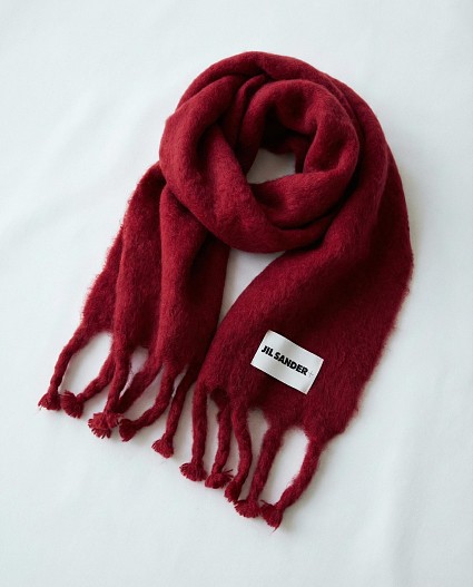 Объемный шарф Jil Sander уже стал визитной карточкой аксессуарной линии бренда. Он выполнен из мохера и шерсти и существует в огромном количестве цветовых вариантов, в данном случае — бургунди.
