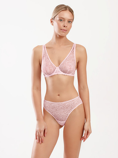 Love Story дополняет линия белья из эластичного трикотажного кружева Lace Flower с деликатным цветочным узором. Кружево выполнено без подкладки и с минимальным количеством швов, что сохраняет ощущение легкости и не утяжеляет посадку. Мягкая резинка под грудью, регулируемые бретели и выверенные формы обеспечивают комфортную поддержку и адаптацию к телу — для ежедневной носки без давления и жесткости.