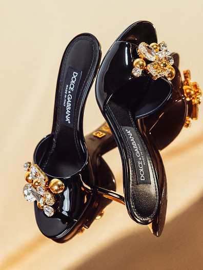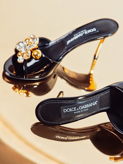 Мюли Keira от Dolce & Gabbana — это яркое и праздничное прочтение классической модели бренда. Верхняя часть украшена декоративными кристаллами и стразами, а каблук представлен в классическом для бренда золотом цвете. Модель выполнена из лакированной телячьей кожи, в том числе и мягкая стелька с технологией Texon.
