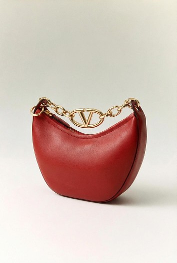 Cумка VLogo Moon mini — это модель бренда Valentino, созданная дизайнером Пьерпаоло Пиччоли в 2024 году. Сумку отличает изогнутый силуэт в виде полумесяца и яркий ремень-цепь с большим логотипом бренда в золотом цвете. Модель выполнена из мягкой зернистой телячьей кожи.