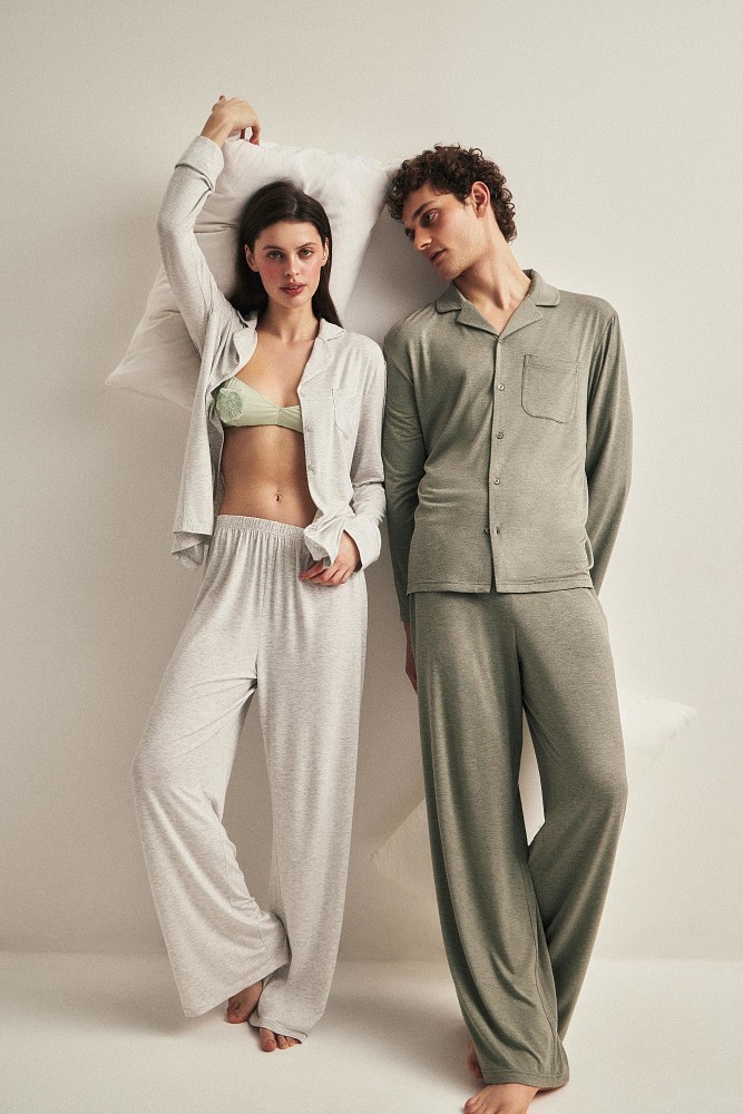 В основе Love Story — бамбуковые пижамы, один из бестселлеров belle you, теперь представленный и в мужской версии. Модели выполнены из трикотажного бамбука с добавлением эластана: материал отличается высокой мягкостью, шелковистой фактурой и хорошей воздухопроницаемостью, поддерживая комфортный микроклимат тела в течение дня и ночи. Полотно мягко адаптируется к телу, сохраняет форму и ощущение свежести, а эластан отвечает за эластичность и стабильную посадку. Продуманные лекала, свободные силуэты и лаконичные линии делают пижамы универсальными — для отдыха дома, неспешных выходных и спокойных утренних ритуалов.